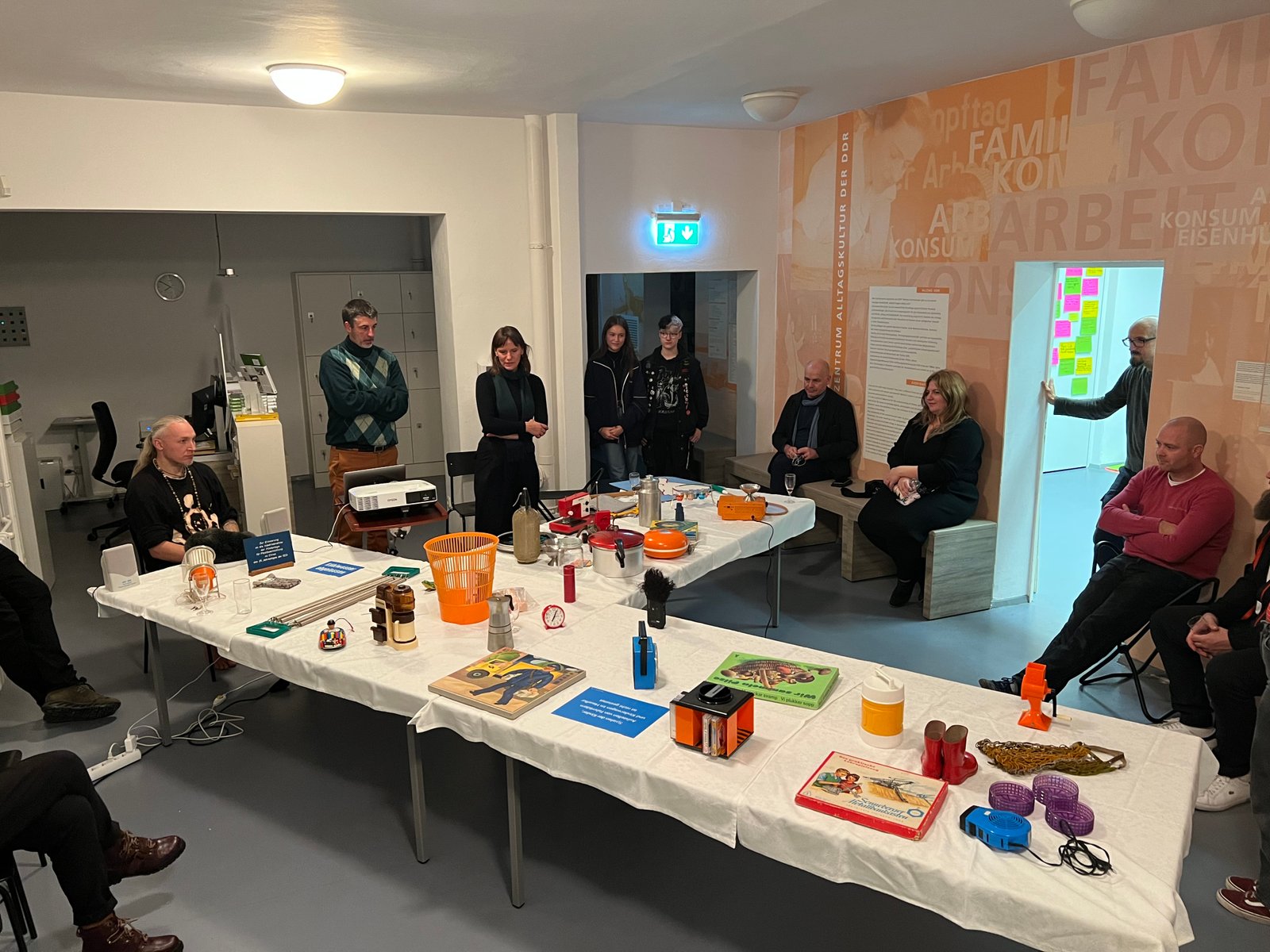 On October 27 the "Charity Dinner" scenario (developed in Visaginas) was tested with the collection of Eisenhüttenstadt Museum of Utopia and Daily Life and with the community formed around the Museum. Objects from the collection were used as topic starters and as lenses to discuss the upcoming Platz der Jugend reconstruction. Alex Urazov, collector from Visaginas, has joined the event on site to discuss further exchanges between two towns. This link to Visaginas has opened up discussion on possible linked or twinned development of monofunctional towns.