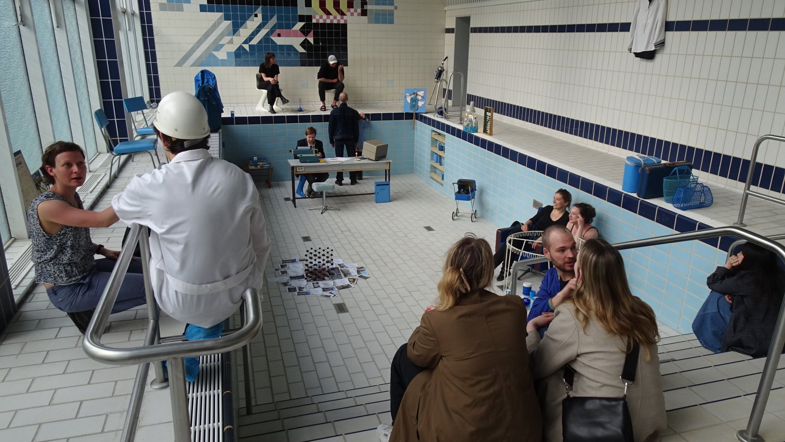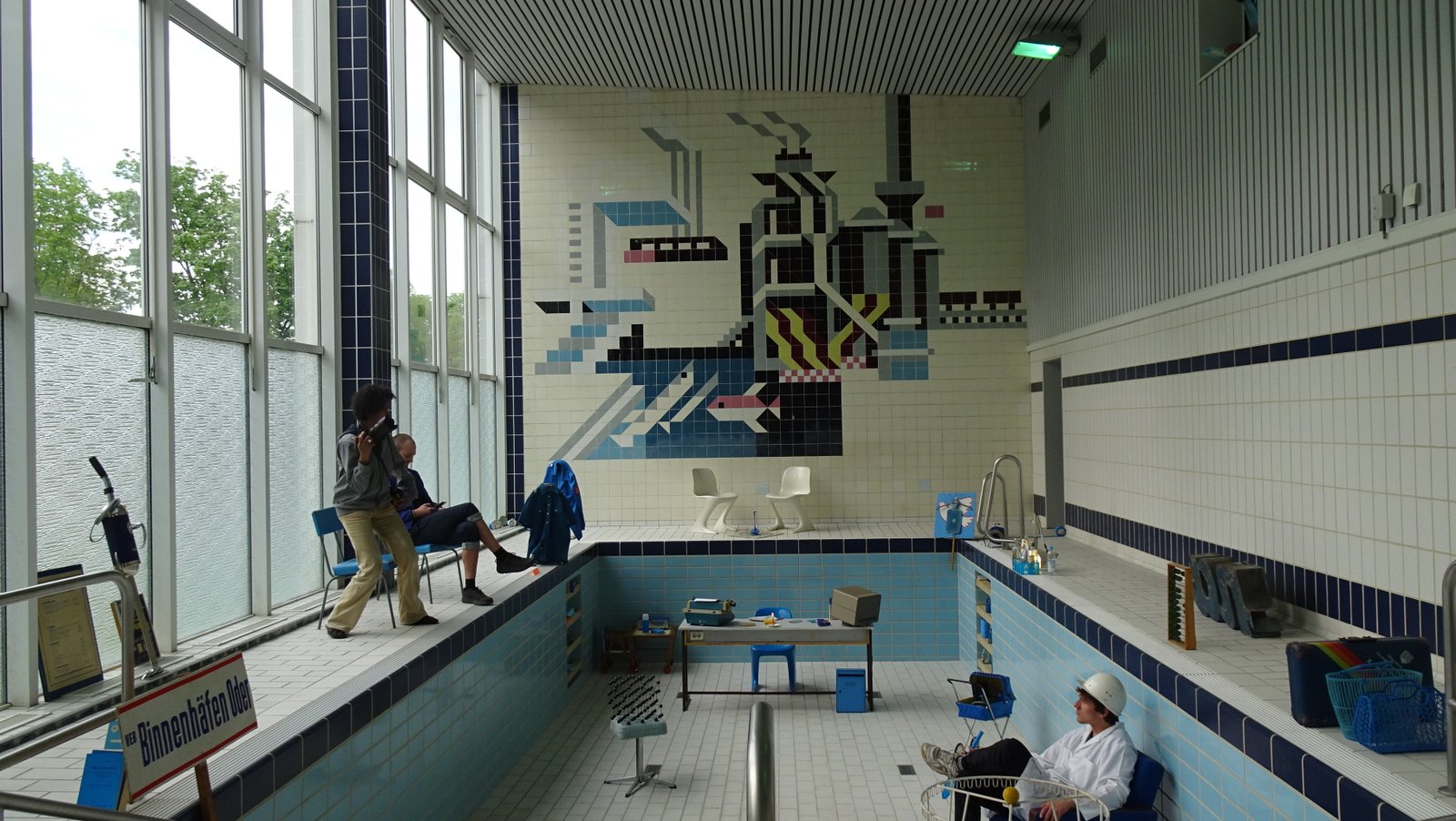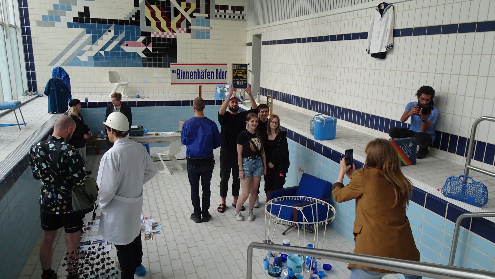 Located in the region with one of the highest median ages in Europe, Eisenhüttenstadt is forced to address demography in its urban projects. Due to shrinkage of the steel industry jobs (once the reason why the town was founded) and the shrinkage of the town’s population, one has to revisit Eisenhüttenstadt urban structure. Aging population, among other aspects, is the challenge for deciding about which architecture and design should be preserved and for what purpose. This event explored the possibility to re-tool the town’s high quality welfare infrastructures initially planned for youth and adolescence in the new conditions and for the new broader variety of user groups. It focused on the swimming pool in a school building, which makes up a part of now largely abandoned and unused Platz der Jugend (Youth Square). The event was about reopening the swimming pool for the public from Eisenhüttenstadt and beyond, after decades of being sealed and forgotten. In a longer-term perspective it was a flagship reopening before the anticipated re-launch and re-design of the entire Platz der Jugend in 2023-2024. The event’s main protagonist is Martin Maleschka - architect and heritage activist, one of the pioneers in archiving and promoting GDR urban design.